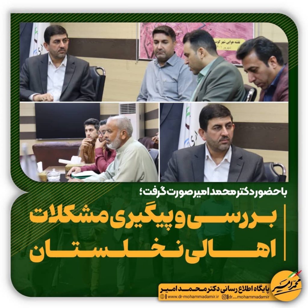در این جلسه دکتر محمد امیر بر رفع هرچه سریعتر مشکلات این منطقه تاکید کرد. و بیان داشت : جهت تسریع در رفع مشکلات مردم شریف باید نشستی با حضور وزیر راه و شهرسازی برگزار شود.گفتی است این جلسه با حضور شهردار و رئیس بنیاد مسکن شهرستان کارون و نمایندگان اهالی نخلستان برگزار شد.